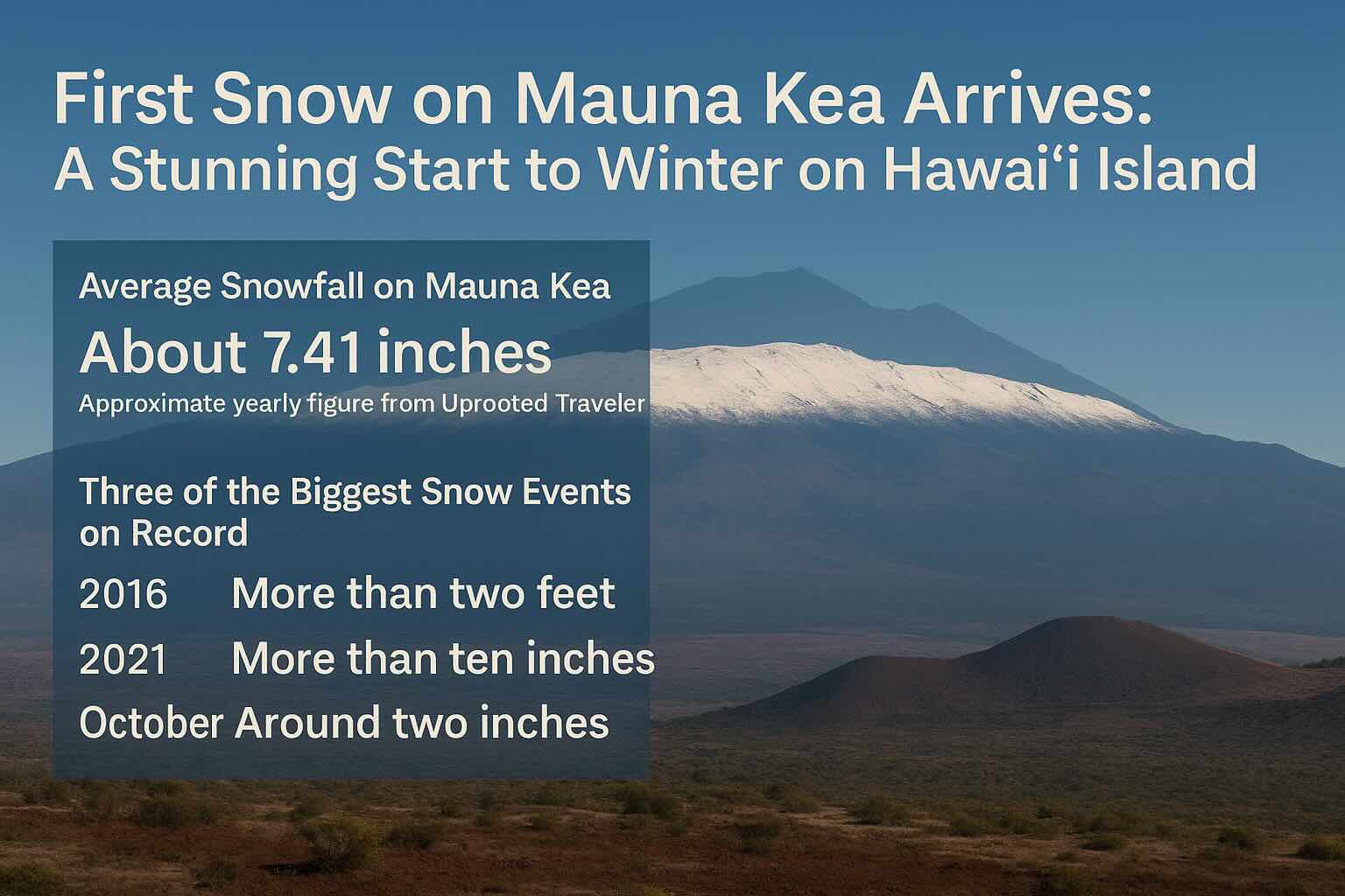 The first snow of the season has settled on Mauna Kea, and with it comes one of the most striking contrasts anywhere in the Pacific. While much of the world imagines Hawaiʻi as endless sunshine and warm ocean air, the summit of Mauna Kea regularly reminds us that the islands hold a far greater range of climates than many realize. Rising to nearly 14,000 feet, the mountain is high enough to receive measurable snowfall each winter, transforming the iconic volcanic peak into a momentary alpine scene.