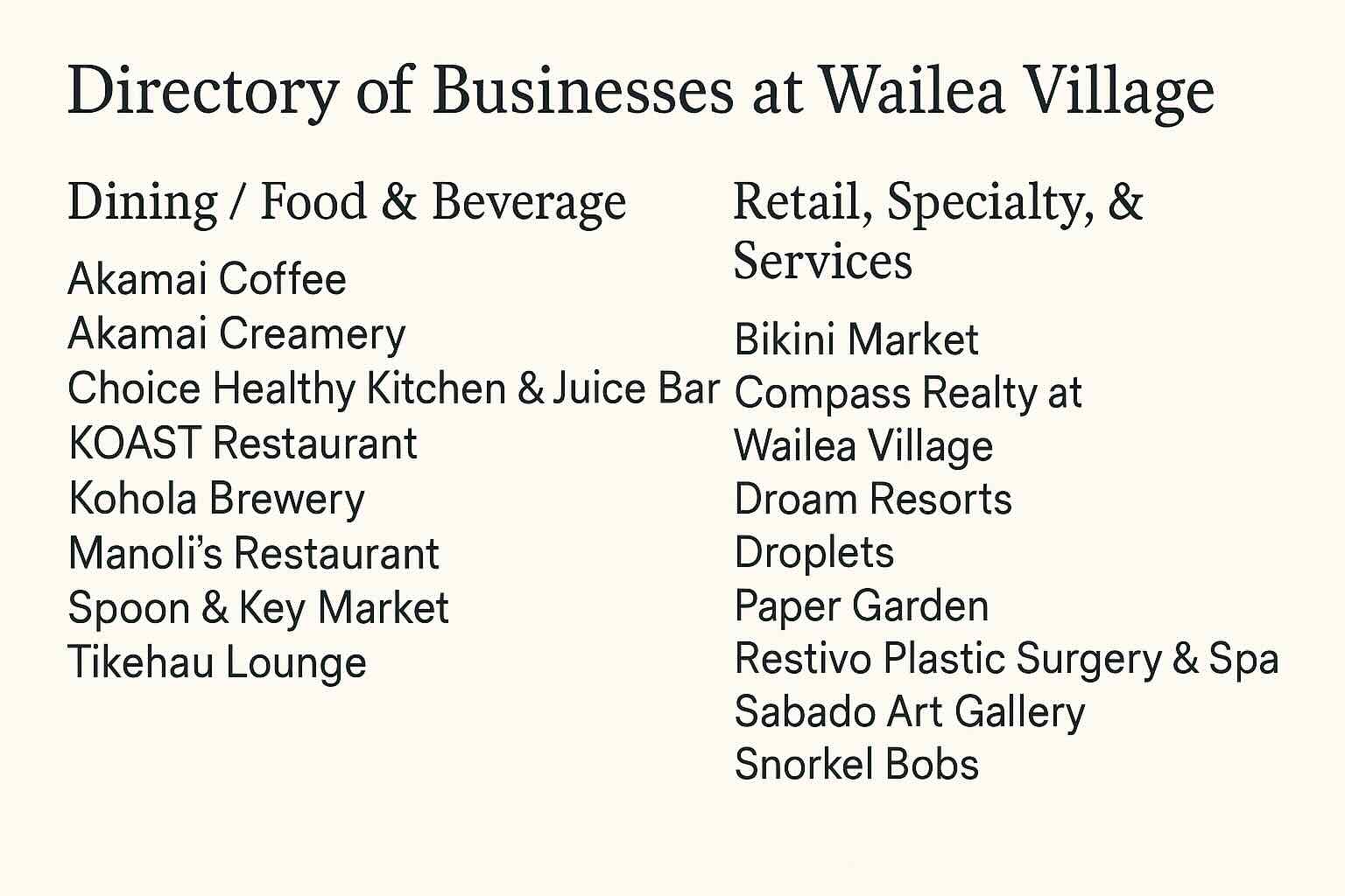 Beyond dining, you will find Sabado Art Gallery, Paper Garden, and Bikini Market highlighting Maui creativity and craftsmanship. Practical stops like Compass Realty, Snorkel Bob’s, and a wellness spa make it a destination that serves both residents and visitors.