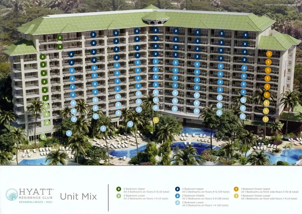 This is a 2/52 undivided interest fee simple deed for apartment number 3307 at the Hyatt Vacation Club Maui on Ka'anapali Beach with fixed time usage rights for weeks 51 and 52 every year. These usage rights entitle the owner to a guaranteed reservation for the 14 consecutive nights checking in on a Saturday and checking out on a Saturday that includes Christmas Eve and New Year's Eve. The owner shall also have exclusive rights to reserve and then use and occupy any 2BR/2BA unit on floors 1-4 (floor request is first come first serve with the other 29 2BR Lower Level owners). There are are a total of 30 2BR units on floors 1-4 all with Ocean Views (see unit mix photo). First year of occupancy is 2026 with a reservation for 12/19/26 - 1/2/27. Price does not include 2026 HOA dues of approx. $8,590.68 already paid by Seller and to be reimbursed by Buyer at close of escrow. Sleeps 7 guests. All utilites, property taxes and reserves for regular remodel and refurnishing cycles included in HOA dues. No resort fees. All parking is by valet which is complimentary. Daily housekeeping a la carte. Master Bedroom - King Size bed with lanai access and adjoining bathroom with two vanities, stand up shower, stand alone tub and private water closet. Second Primary Bedroom - Queen-size bed plus loveseat with twin-size pullout and an adjoining bathroom includes one vanity and shower/tub combo. Queen-size convertible sofa sleeper in living room. Flat screen smart TVs in all rooms. Full kitchen with Bosch appliances, J.A. Henckel cutlery and CaesarStone countertop with three bar stools. Dining room table seats six. Ceiling-to-floor accordian glass doors open up the entire living area to the lanai space with spectacular views of the Ocean and Lahaina. Lanai includes table, four chairs and a day bed. Washer and Dryer in closet next to the kitchen.