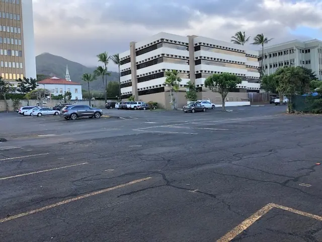 B-2 community business district paved parcel with a water meter installed. The location is adjacent to the Wells Professional Building parking lot and is in the heart of the Wailuku business district. This 7,568 sqft lot is currently being used as a parking lot with month to month leased parking stalls. Legal access is through a private road on Konahau Lane.