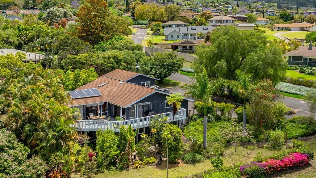 Welcome to Kula – Embrace the Essence of Upcountry Living! Nestled in the enchanting Kula Mala neighborhood, this delightful 5-bedroom 3.5 bath home offers a perfect blend of spaciousness, comfort, and breathtaking upcountry views. Spanning over 2,780 square feet, this residence is not just a home; it’s a canvas for endless possibilities. Conveniently located, you’ll find that both public and private schools, as well as shopping centers, are just a short drive from your doorstep, while Baldwin beach is approx. 15 mins away. Experience the harmonious blend of nature and convenience as you step onto the expansive wrap-around lanai, perfect for enjoying daily sunsets. This outdoor oasis seamlessly connects to the kitchen/dining area, family room/den, and the large primary suite, providing the ideal setting for relaxation and entertainment while savoring the stunning vistas of upcountry and the surrounding landscape. The thoughtfully designed primary suite features ample space, multiple closets and privacy on one side of the home. On the lower level, you’ll discover four additional bedrooms, each with glass doors opening to the lush yard adorned with a variety of fruitful trees, including Lilikoi, Mango, Orange, Avocado, Lemon, Coffee, Apple, and Walnut—perfect for the aspiring chef or nature enthusiast. The upper level showcases a well-appointed Brady-Bunch style full bathroom that conveniently connects the entrance hallway to the primary suite. Furthermore, say goodbye to electric bills with the ample array of 22 owned photovoltaic panels, enhancing energy efficiency and sustainability. Situated on a generous half-acre parcel zoned for rural living, the welcoming entrance and driveway provide abundant parking, while a beautifully converted garage serves as a bright and airy bonus space—ideal for a dance or yoga studio, there is also the exciting possibility of utilizing included architectural design plans to convert it into a detached in-laws suite. With ample room for a large family or the option for long-term rentals, this property is a gem bursting with potential.